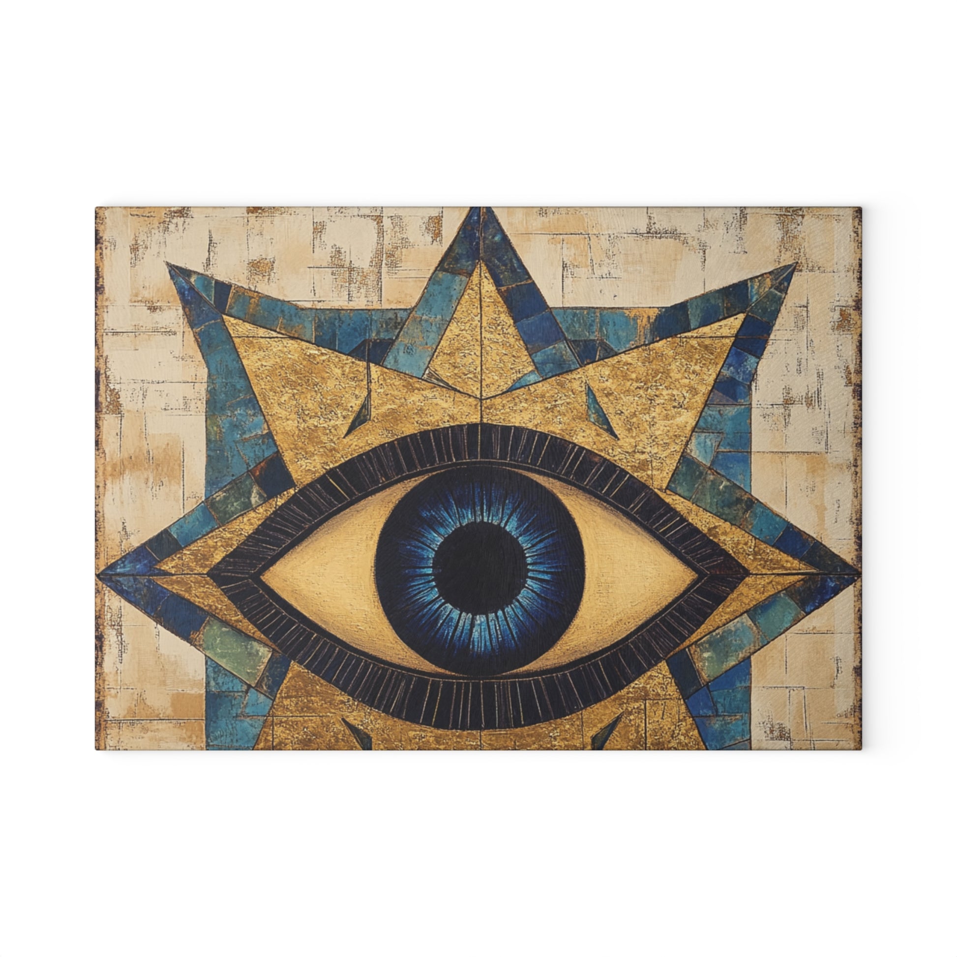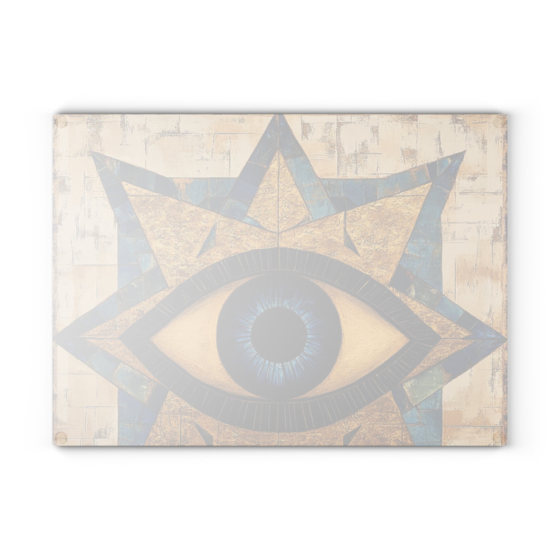This tempered glass cutting board brings a calm, protective energy to your kitchen with a bold evil eye motif printed beneath the surface. It sits steady on counters, catching light across the glossy design while offering a sanitary, textured prep surface that’s easy to wipe clean. Use it when you’re chopping vegetables for weeknight dinners or laying out cheese for a small gathering — the image adds a little ritual to routine tasks and feels like a small talisman watching over your cooking space. The durable printing won’t scratch away as you work, and the subtle rubber feet keep the board in place so you can chop with confidence. Hand-wash care keeps the colors vivid so the pattern continues to catch the eye years from now.